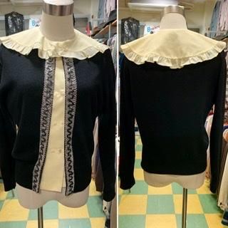 50s 襟が大きい ブラウス ヴィンテージ シャツ 1950年代 うす黄色 つけ襟