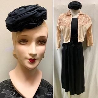 40s 50s 黒 ハット 帽子 ヘッドドレス ヘッドピース ヴィンテージ ドレス 1950年代 ボンネ