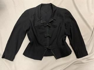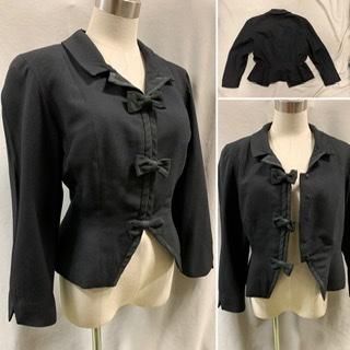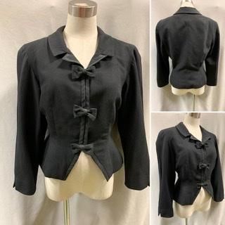40s 50s ウエストがくびれたジャケット リボンの飾りつき レディース ヴィンテージ 黒ジャケット ギャバジンジャケット 1940年代 1950年代