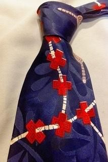 なす紺色がベースになったネクタイは この時代には珍しいです。