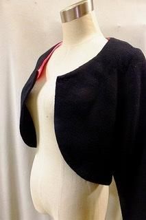 50s 襟なし 前がラウンドした 黒ボレロ 黒ジャケット ヴィンテージ ショートジャケット 1950年代 黒ピンク 結婚式