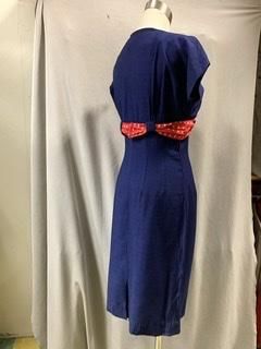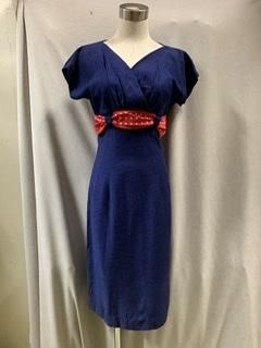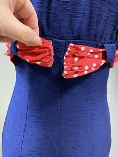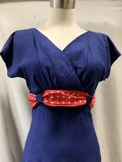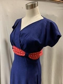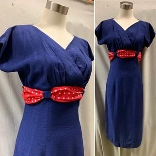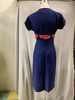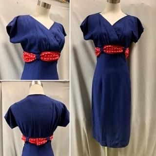 40s Vネック マリン風 トリコロールカラー レーヨンドレス 赤白ドットベルト ワンピース ヴィンテージ 50s 1940年代 1950年代