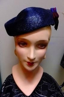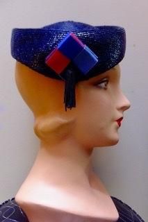 40s 50s フリンジの飾りつき 紺色 濃紺 ネイビーブルー ヘッドドレス 帽子 ハット ヴィンテージ ヘッドピース