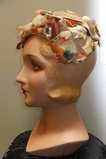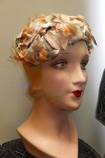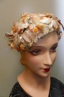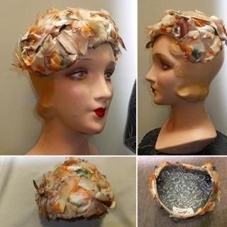 40s 50s ハット セピア色 花びら 羽根 ヘッドドレス ハット 帽子 ヴィンテージ 1940年代 1950年代
