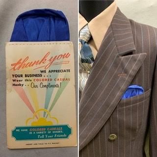 40s 台紙つき ポケットチーフ ヴィンテージ 青 ロイヤルブルー 色番号8