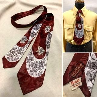 40s ネクタイ 幅広12cm ヴィンテージ フラワープリント 1940年代 ほぼデッドストック