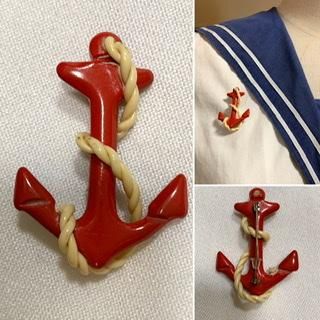 30s 赤 イカリ ⚓ ブローチ ヴィンテージ アクセサリー アンティーク アンカー