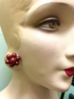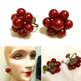 30s 40s お花 ベークライト イヤリング 赤 ヴィンテージ アンティーク ピアス