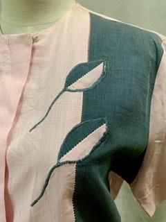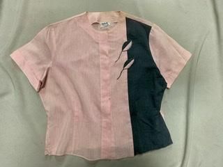 40s 50s ピンク グレー 切替 葉っぱ ブラウス ヴィンテージ グレピン シャツ 隠しボタン