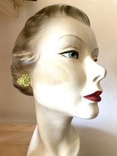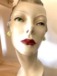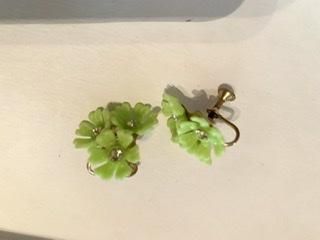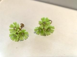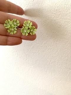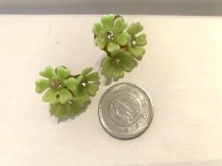 50s ライムグリーン 花びら イヤリング きみどり キミドリ アンティーク ヴィンテージ 1950年代