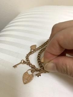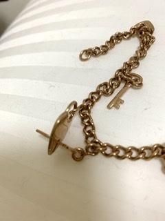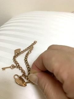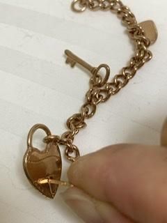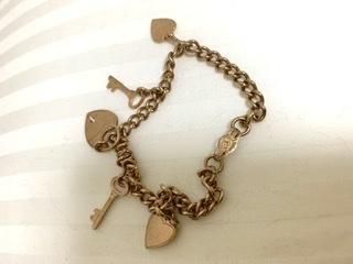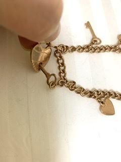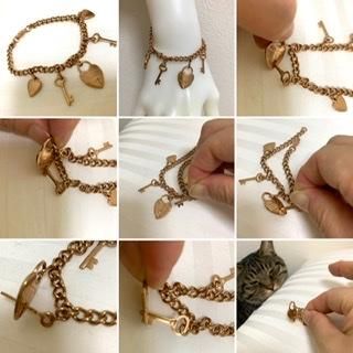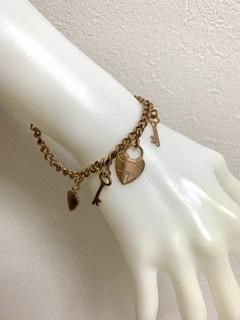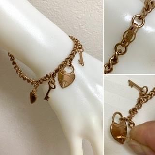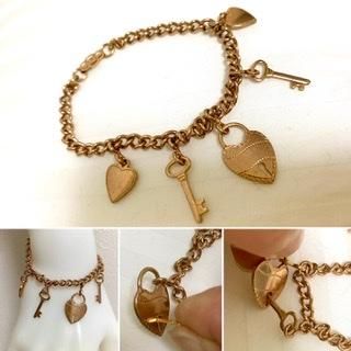 40s ピンクゴールド 揺れる ハート 鍵 チャームブレスレット アンティーク ヴィンテージ ジュエリー 1940年代 sweet Heart