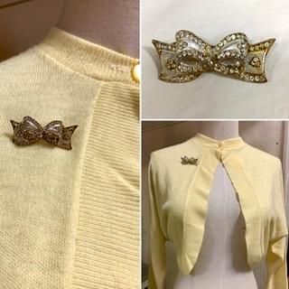 50s リボン ブローチ ラインストーン ヴィンテージ アンティーク