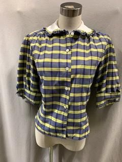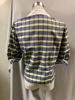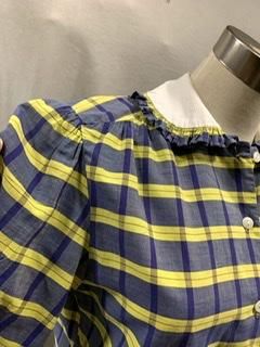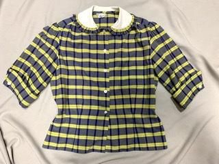 30s 40s パフスリーブ 白襟 チェック ブラウス カフス仕様 シャツ ヴィンテージ 1930年代 1940年代