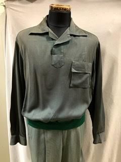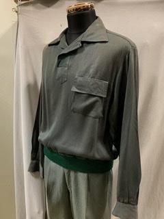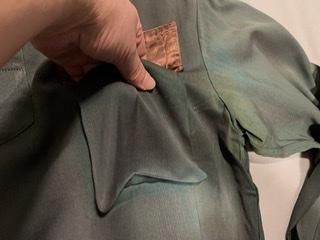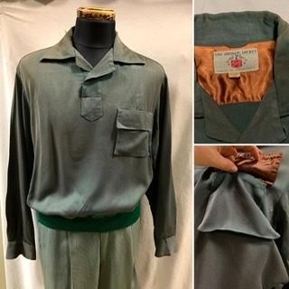 40s 50s 玉虫色 グリーン ギャバジン プルオーバーシャツ ギャバシャツ リブシャツ ヴィンテージ フラップつき