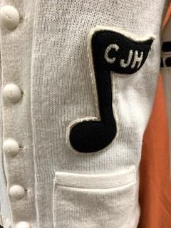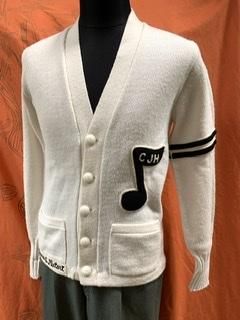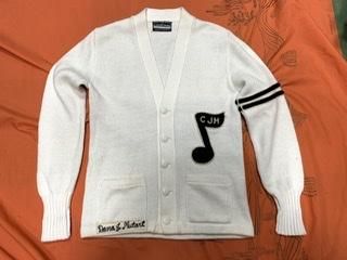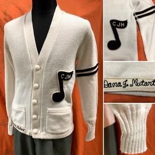 50s メンズ レタードカーディガン 音符柄🎵 スクールカーディガン ヴィンテージ 1950年代 モノトーン ニット