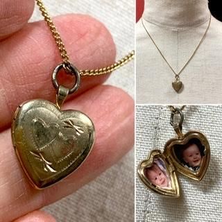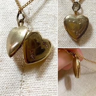 40s 50s 彫刻 スイートハート ロケット 米国 ペンダント ハート ヴィンテージ アンティーク ゴールド ネックレス アクセサリー ジュエリー