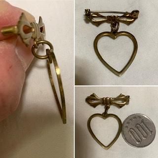40s 揺れる ハート ブローチ リボン ペンダントトップ アンティーク 50s アクセサリー ジュエリー ヴィンテージ