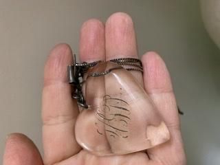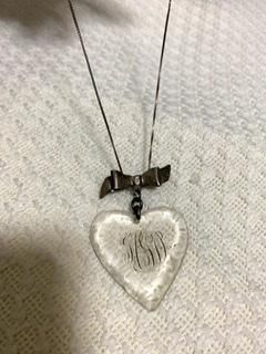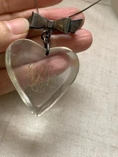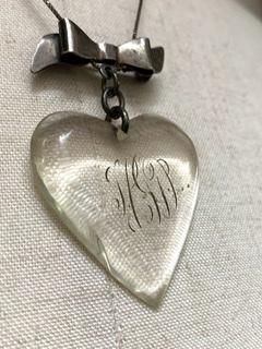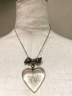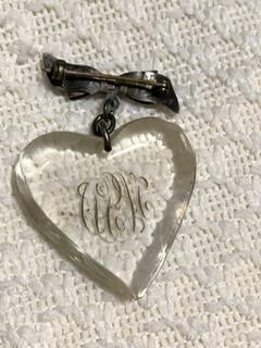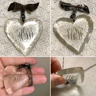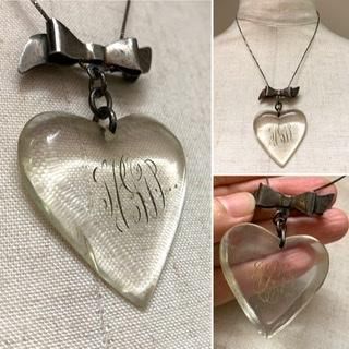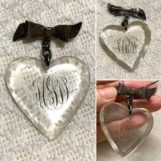 40s ビッグハート ルーサイト ハート リボン ブローチ ペンダント アクセサリー ネックレス 揺れるブローチ アルファベット 1940年代