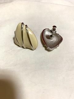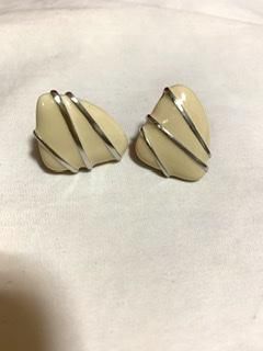白 流れるようなシルバーのライン 三角 ピアス ヴィンテージ