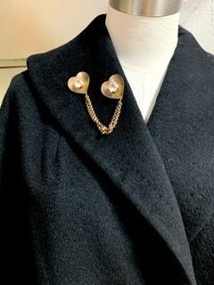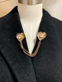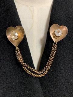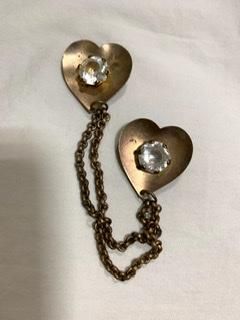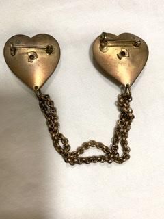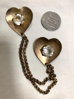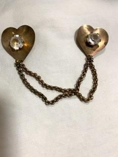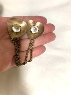 40s 50s 銅製 ダブルハート チェーンブローチ copper アンティーク ヴィンテージ ハート ブローチ ラインストーン カーディガンクリップ アクセサリー ジュエリー
