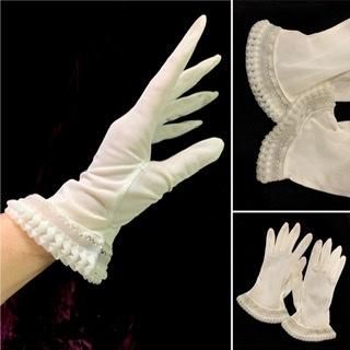 スマホ対応! 40s 50s 60s 白 手首フリル 手袋 グローブ レース ヴィンテージ 1950年代