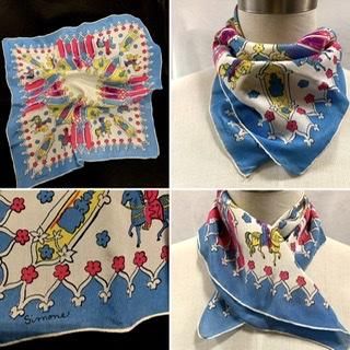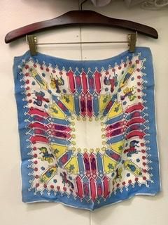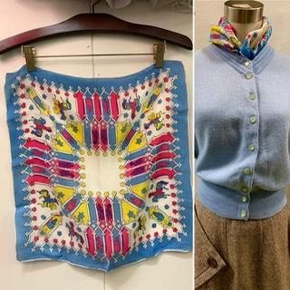 40s 50s CIMONE 鮮やか スカーフ シルク ヴィンテージ 1940年代 1950年代 馬柄 乗馬 乗馬柄