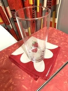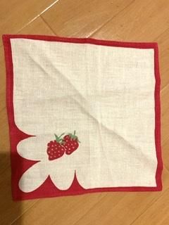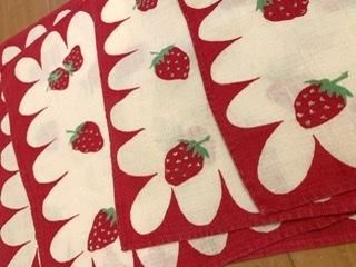 50s いちご🍓 小サイズ コースター 布ナプキン ストロベリー柄 1950年代 麻 リネン ヴィンテージ テーブルウェア