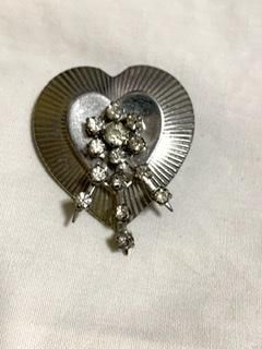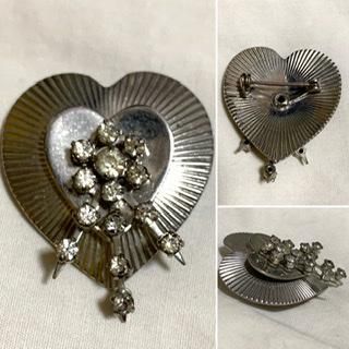 50s キラキラ ハート ブローチ ヴィンテージ アンティーク シルバー 1950年代 ラインストーン アクセサリー