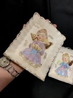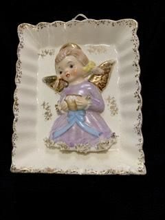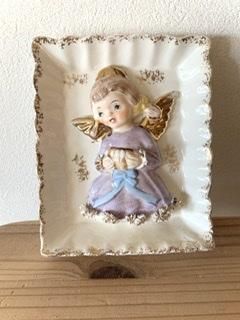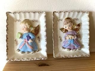 50s (ペア) 女の子 天使 陶器 額縁 ヴィンテージ アンティーク 置物 置き物 ウォールデコ アンティーク雑貨 ヴィンテージ雑貨 壁かけ 1950年代