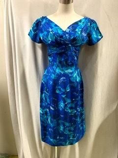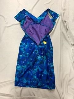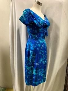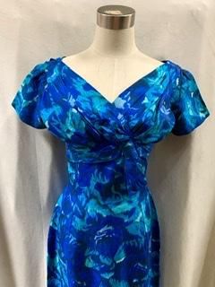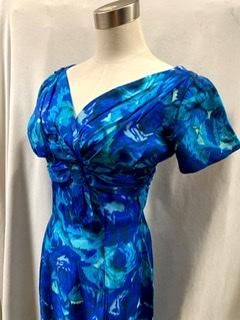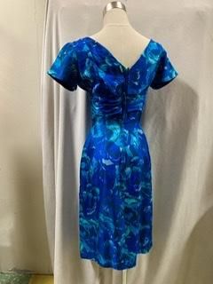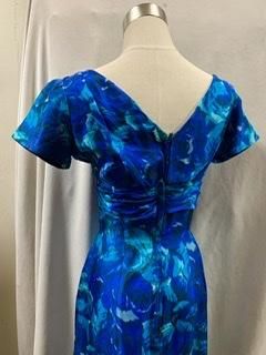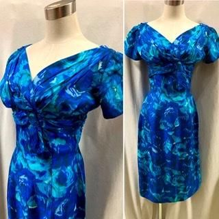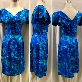 40s 50s ブルードレス 前も後ろもVネック タイトスカート ヴィンテージ ワンピース クラシカルドレス 1950年代 パーティドレス フォーマル