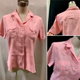 50s HbarC 半袖 ウェスタンシャツ ヴィンテージ レディース 1950年代 ピンク ロカビリー ブラウス シャツ