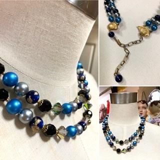 50s ブルー 2連ネックレス ヴィンテージ ジュエリー 1950年代 アクセサリー