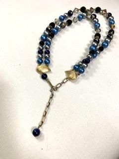 ブルー系のいろんな色のガラスビーズが印象的です。