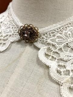 ワンピースにつけたり、セーターやカーディガン、はたまたカジュアルにTシャツにつけても可愛いです。