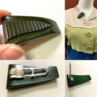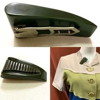 30s 40s 彫刻 ベークライト ドレスクリップ アンティーク ヴィンテージ アクセサリー Bakelite 1930年代 1940年代 ブローチ アクセサリー