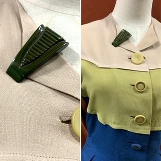 穴の開かないブローチ、といった第二次世界大戦中に流行ったアイテム。