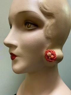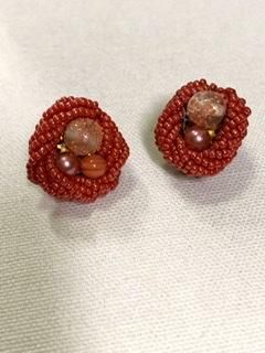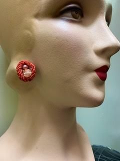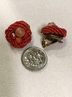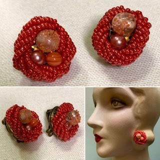 50s 60s 赤 チェリーレッド イヤリング ヴィンテージ アクセサリー アンティーク 1950年代 ビーズ ジュエリー クリップイヤリング