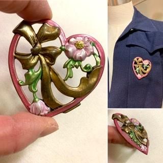 40s 大きめ ハート お花 ブローチ ヴィンテージ アクセサリー コスチュームジュエリー アンティーク 1940年代