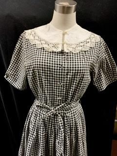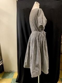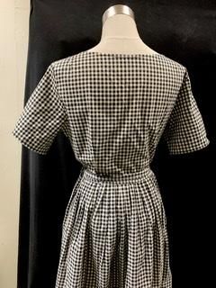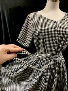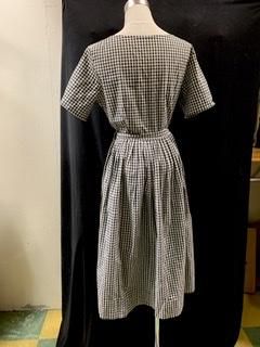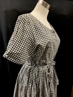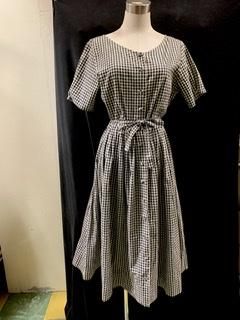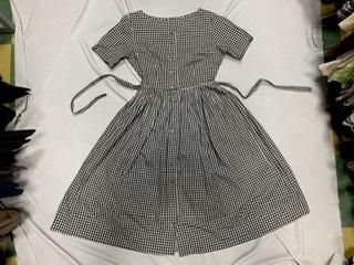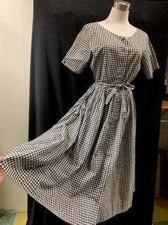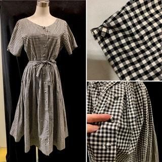 50s モノトーン 黒白チェック ウエスト紐つき ワンピース 綿 コットン ヴィンテージ シャツドレス 1950年代