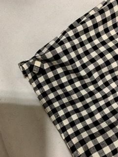 50s モノトーン 黒白チェック 襟なしワンピースです。