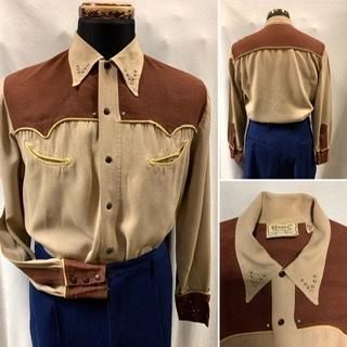 40s 50s HbarC ツートーン 切替 ウエスタンシャツ ギャバジン スタッズ ギャバシャツ ヴィンテージ ロカビリー 1950年代