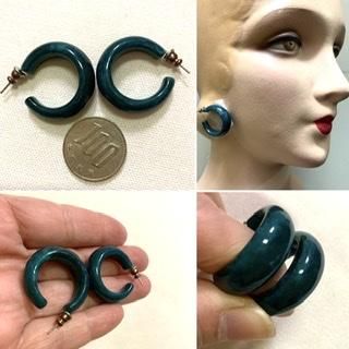 グリーン マーブル ピアス フープ ヴィンテージ アクセサリー イヤリング