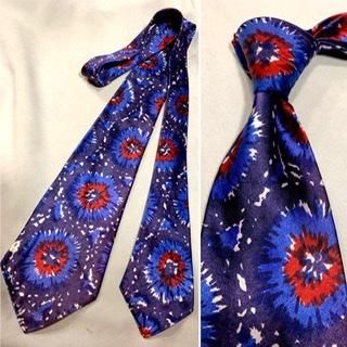 50s デッドストック ネクタイ ナス紺 ヴィンテージ フラワープリント 1950年代 USA
