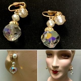 50s 揺れるイヤリング クリア ガラス クリスタル ヴィンテージ 1950年代