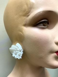 50s 白い花 イヤリング ヴィンテージ 白 お花 アクセサリー ジュエリー 1950年代