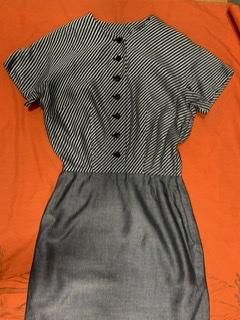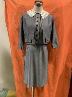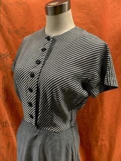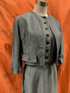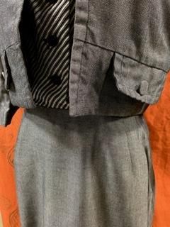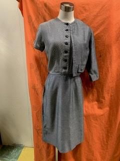 50s 上下セット ワンピース ジャケット ヴィンテージ Nelly Don シルバーグレー 黒白ななめストライプ ペンシルスカート