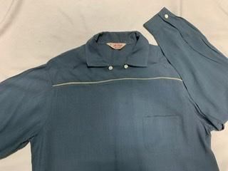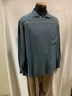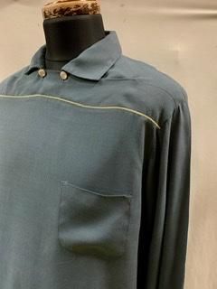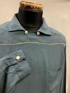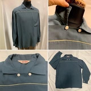 50s 切替ピーターパンシャツ La Scala モスグリーン 黄色 ヴィンテージ ロカビリー プルオーバー プルオーバーシャツ 1950年代