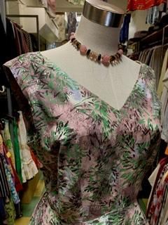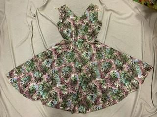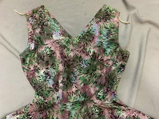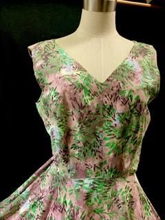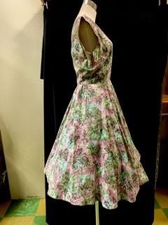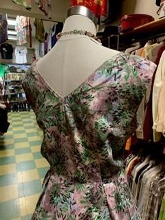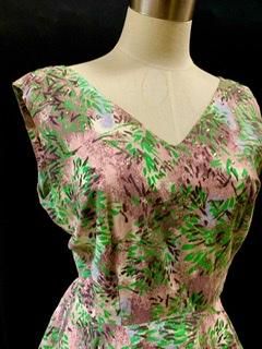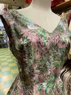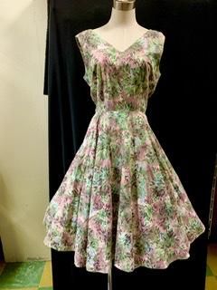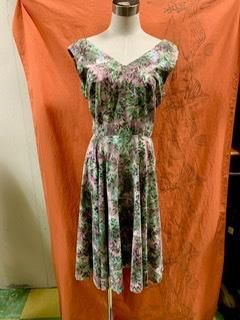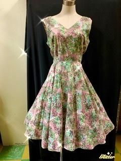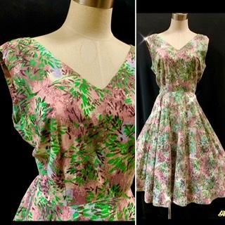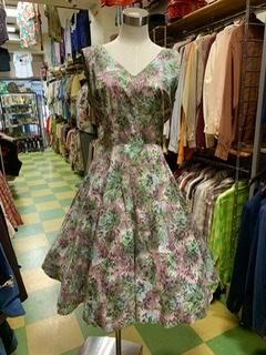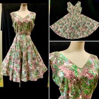 50s 紫 グリーン キラキラ ラインストーン Vネック ワンピース ヴィンテージ 1950年代 フレアースカート サーキュラースカート