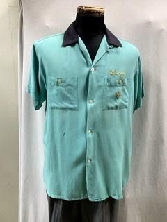 50s Nat Nast 切替 ボーリングシャツ ヴィンテージ 1950年代 ペパーミントグリーン 黒 ハンドステッチ