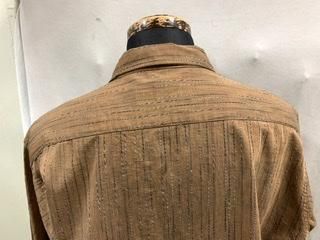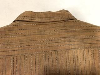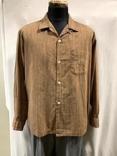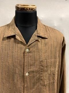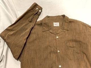 ブラウン地に 黒白ねじれストライプのシャツです。